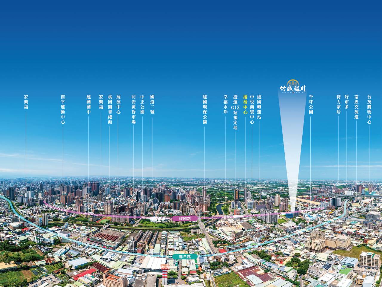 「竹城旭川」2~4房質感規劃,座落經國特區核心、千坪兒童公園第一排,濃翠綠意寬闊棟距,開窗延攬四季綠景。咫尺25,000坪溪濱綠帶、南崁溪水岸自行車道,都市流域願景與川流相依,續寫愜意日常盛景。鄰近經國家樂福、春日路商圈、藝文特區、南崁特力屋、台茂與Costco,暢享五大生活圈的成熟便利。開車轉彎直上南崁交流道、國道系統,城市跨界便利暢行;散步抵達經國轉運站,未來捷運綠線G12站通車,城市路網昇華、近取便捷地利,坐望經國特區發展新風景。