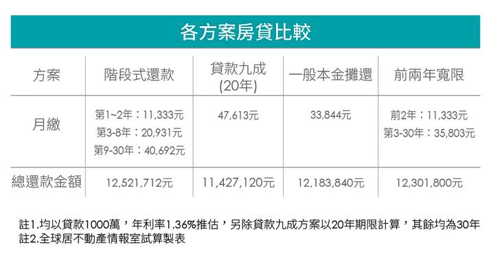 不過以房地合一稅閉鎖六年的限制來看,階段式方案8年內每月平均只需繳一萬多元的房貸,確實有利房產投資客群進場。