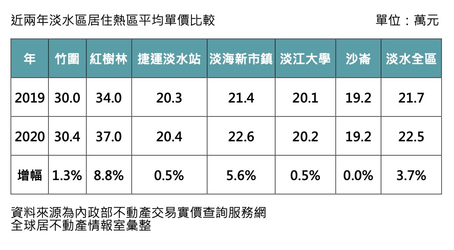 長期被歸類雙北捷運概念一字頭宅的淡水,隨著房市走強,加上與市區核心地帶的交通聯繫改善,以及重劃區規劃,區域房市今昔不同往日,單價行情強勢站上二字頭,紅樹林與竹圍更是三字頭身價,本期全球編帶你去淡水,檢視當地各居住熱區的房價變化。
